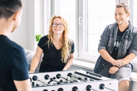 Bei uns wirst du nicht zur Einzelkämpfer*in, auch wenn du mal eine Herausforderung allein rockst. Wir lachen zusammen, packen gemeinsam an und feiern echte Erfolge, wie es sich gehört – im Team. Und wer behauptet, das geht nicht? Kennt uns noch nicht.